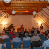 Manfred Schoof mit trioPLUS am 31. August 2018 beim Semestereröffnungskonzert zum Thema "Europa" im Konzertsaal im Murkenshof der Volkshochschule Lilienthal. (Fotos: Winfried Heins).