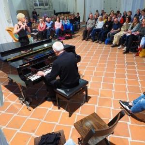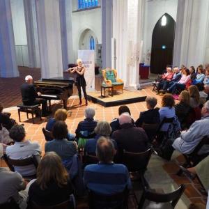 Charlotte Ortmann, Querflöte, und Peter Ortmann, Klavier beim Vorleseabend mit Musik in St. Petri in Lübeck am 3. Juni 2019. (Fotos: Ingo Schaarschmidt).