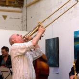 Conny Bauer, Posaune, war Gastsolist in der Reihe "trioPLUS trifft Europas Jazz Legenden" am 22. September 2017 in der St. Petri-Kulturkirche in Lübeck. Ehrengast an diesem Abend war Jost Gebers, Gründer der Free Music Production (FMP), von dem auch die Fotos stammen.